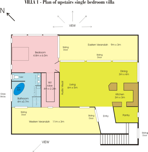 rooms are in an area of 9m x 6m, with 3m wide verandahs to